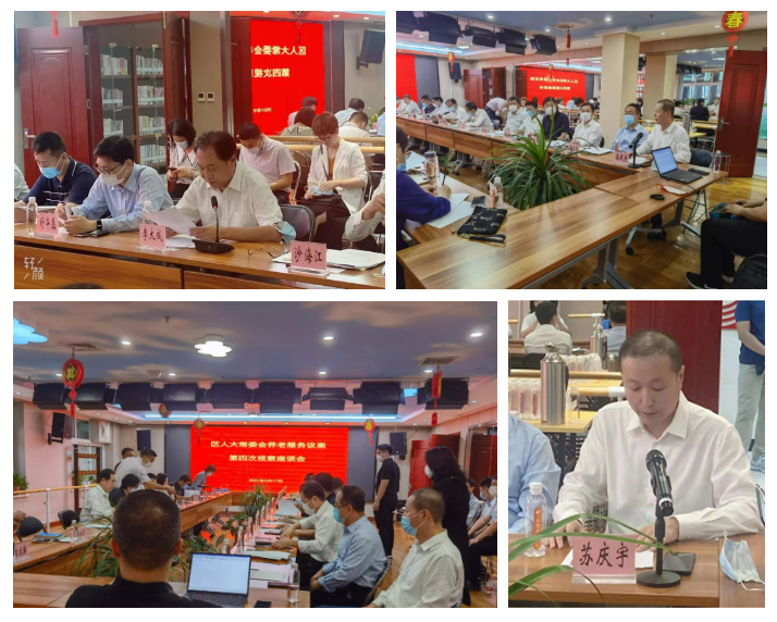 随后,考察团来到曙光街道党群活动中心参加海淀区人大常委会养老服务议案第四次视察座谈会。会议由区人大常委会代表联络室主任孙大钧主持,海淀区民政局局长李大成就“关于居家养老延伸服务工作情况”汇报,会上各级领导对机构养老、居家养老、医养结合等养老问题进行交流。陆杰华教授、区政府主管领导、区人大常委会领导等分别讲话,区人大常委会领导、组成人员、区人大代表等各级领导纷纷发言。泰和养老总经理苏庆宇积极参与讨论并针对医养结合等养老问题积极发表看法。