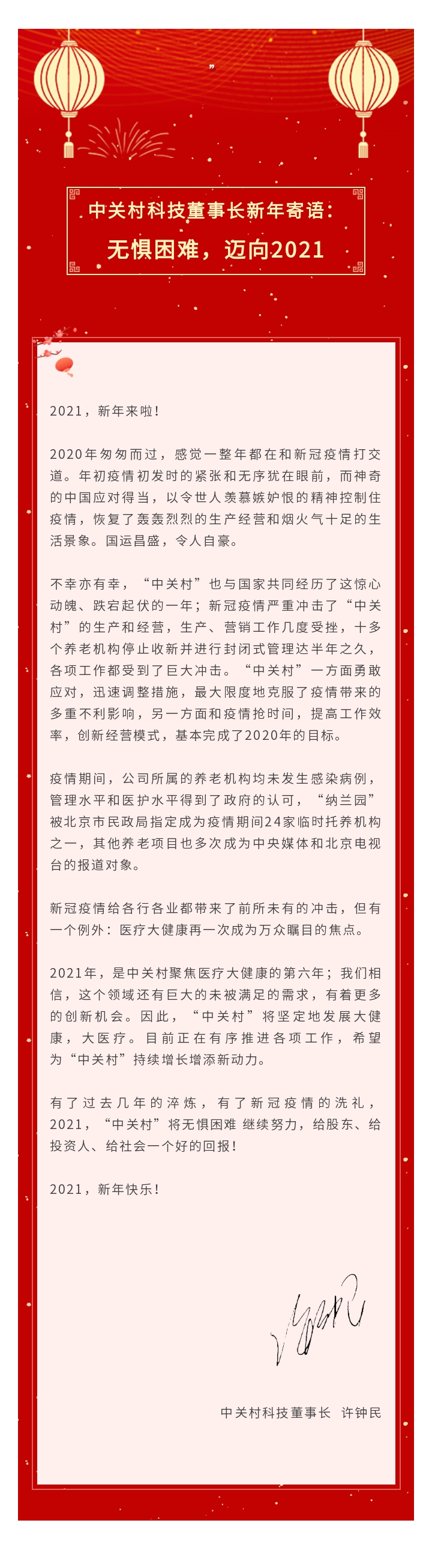 ok138cn太阳集团董事长新年寄语:无惧困难,迈向2021