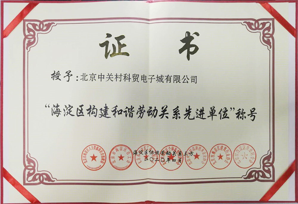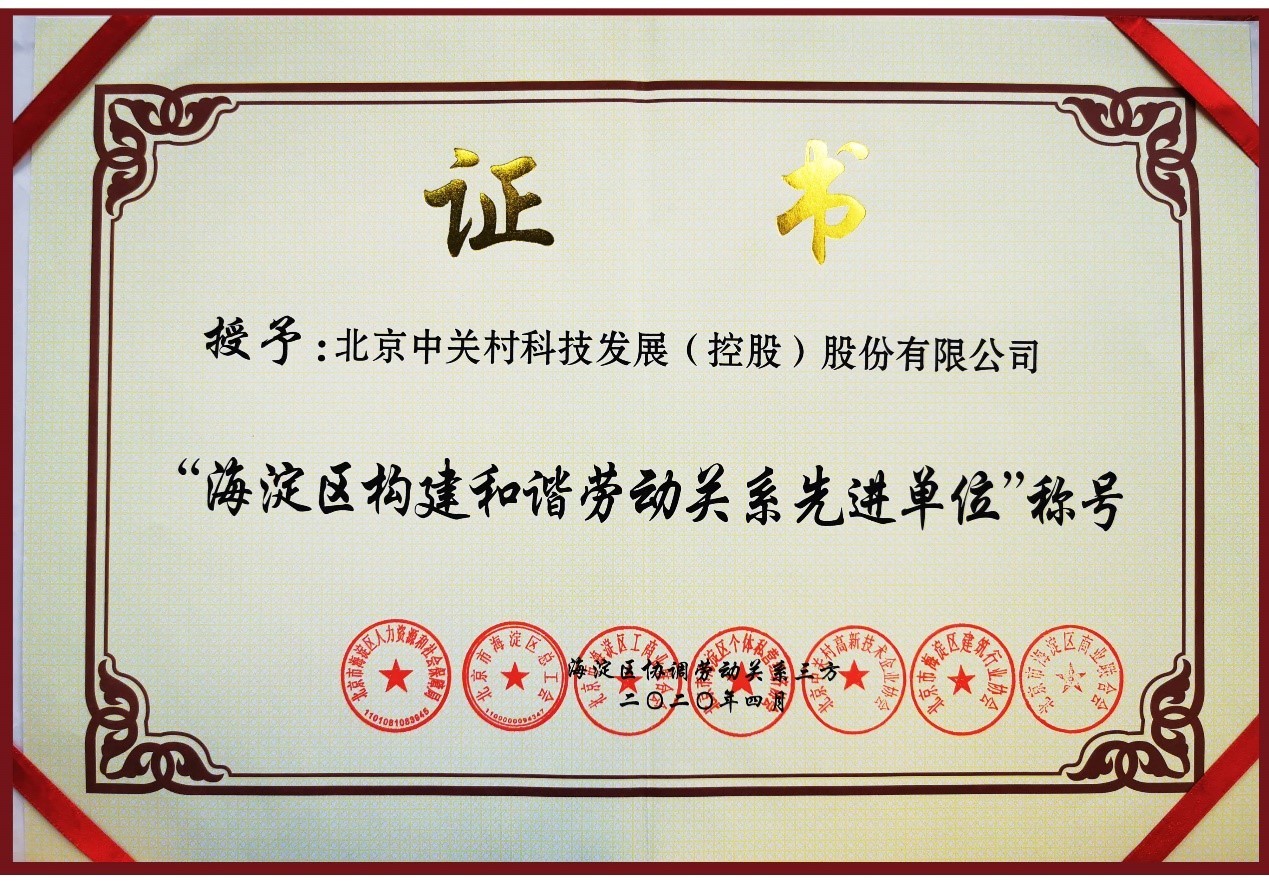 近日,北京市海淀区人力资源和社会保障局、北京市海淀区总工会、北京市海淀区工商业联合会等7家单位联合下发通知,授予ok138cn太阳集团(以下简称“ok138cn太阳集团”)及其旗下北京中关村科贸电子城有限公司(以下简称“中关村科贸电子城”)“海淀区构建和谐劳动关系先进单位”荣誉称号。