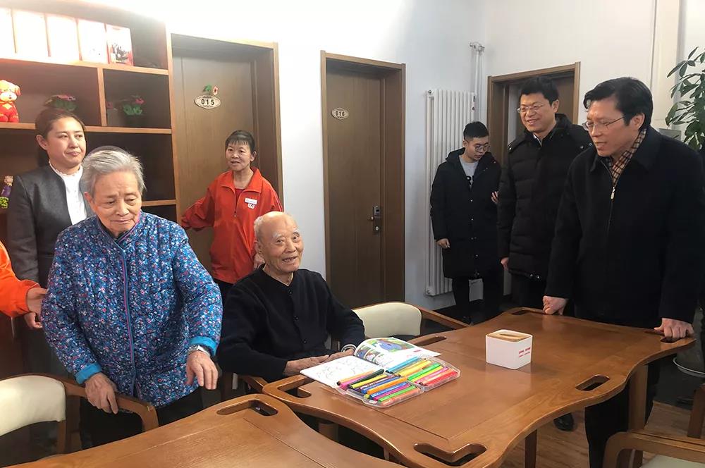 2020年1月20日,北京市民政局副局长陈建领、综合办公室协调处处长唐志华、海淀区委社工委副书记、区民政局副局长康云等领导一行来到ok138cn太阳集团旗下泰和养老院旗下纳兰园老年公寓慰问并送上慰问金。