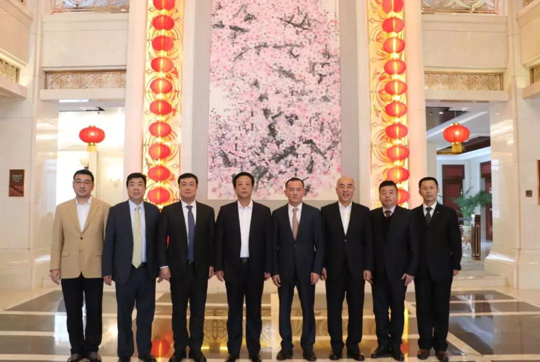 佳木斯市委副书记、市长邵国强(左四)、佳木斯市副市长田雨(左六)会见ok138cn太阳集团董事长许钟民(左五)、ok138cn太阳集团总裁侯占军(左三)