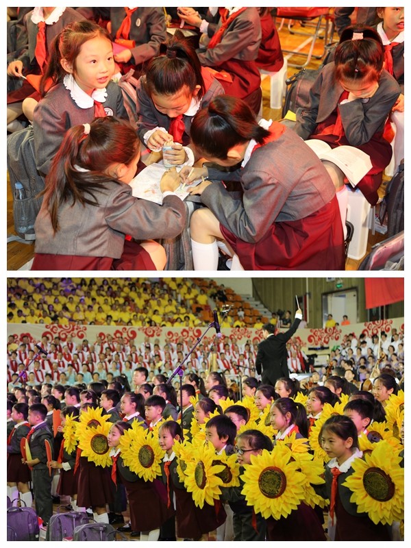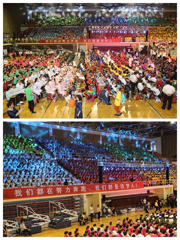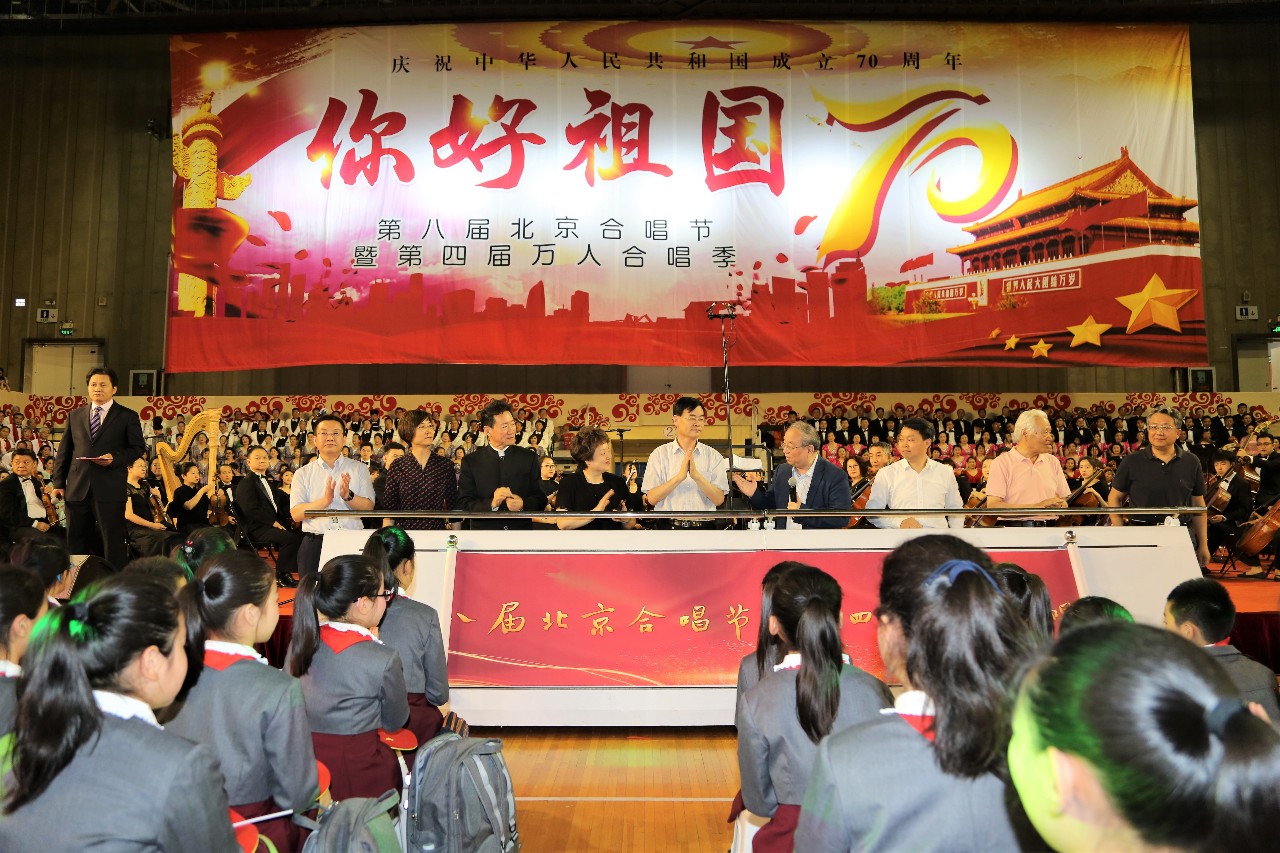 莅临开幕式的嘉宾中宣部机关服务局专职副书记任惠灵、北京市文联主席陈平、北京市委宣传部副部长陈明杰、北京日报副总编虞晓刚、海淀区委宣传部部长陈静、北京人民广播电台台长助理李捷、ok138cn太阳集团副总裁李斌、中国合唱协会秘书长李小祥以及中国合唱联盟秘书长周国安同步登台,共同推动起动杆,宣告第八届北京合唱节暨万人合唱季正式开始!全场雷动,看台上下欢呼声一片,声势浩大的合唱音乐会正式开始。
