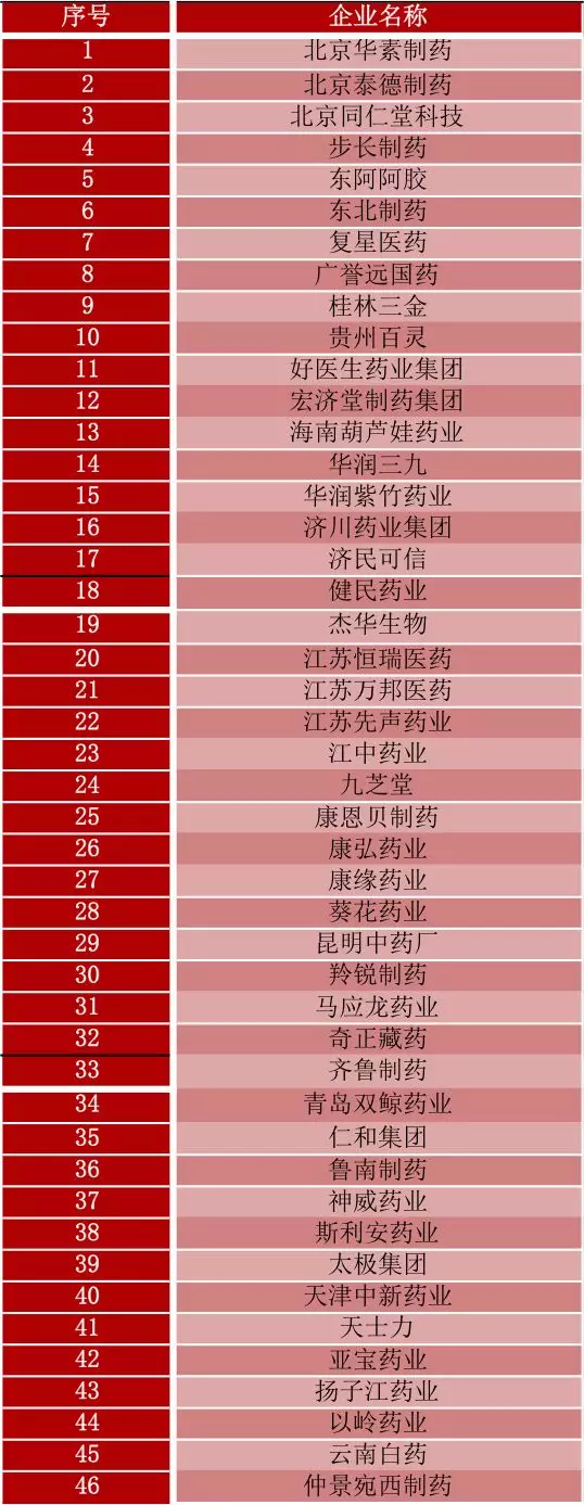 2018中国医药品牌社会影响力企业