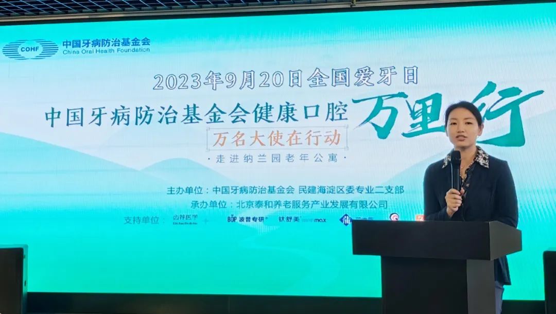 活动开始,中国牙病防治基金会宣传推广部副主任王丽丽代表基金会致辞:很荣幸在920全国爱牙日当天能来到纳兰园老年公寓开展,特别感谢北大口腔医院牙周科栾庆先教授及团队医生为纳兰园的长者开展“老年健康口腔讲座”和义诊。中国牙病防治基金会,成立于1994年4月,是中国口腔医学领域唯一经民政部批准设立的全国性公募基金会。基金会通过走进社区,走进老年公寓等形式开展一系列的口腔活动,未来将开展更多的面向社会,服务大众的口腔活动,动员更多的医生力量参与到口腔活动中来。