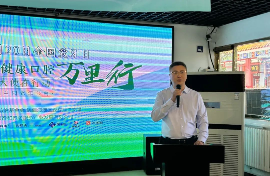 纳兰园老年公寓院长刘佰文代表泰和养老对中国牙病防治基金会、民建海淀区委的领导、北大口腔的专家们以及爱心单位领导的到来表示热烈欢迎。泰和养老始终以为老年人提供全方位的养老服务初衷,口腔健康是提高老年人生活幸福感的重要因素,本次活动在纳兰园举办对于提高入住长者的口腔健康有着重要的意义,希望通过活动进一步加深和中国牙病防治基金会的合作。感谢社会各界对老年人健康的关注和关爱,关爱老年口腔,乐享健康生活!