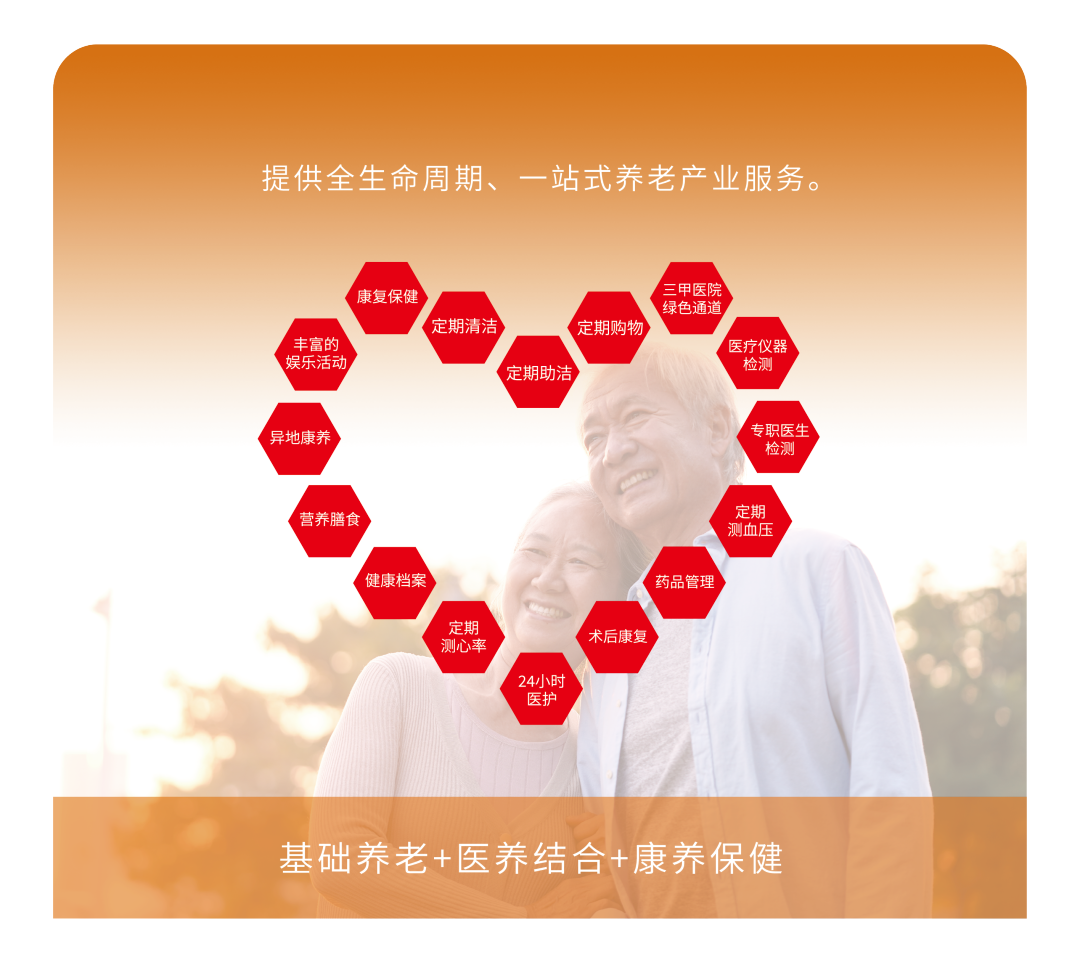 泰和养老以活力长者、半失能、失能、失智以及高龄空巢等类型长者为主要服务对象,产业布局从基础的社区养老驿站、社区养老照料中心,到综合型“医养+康养”相结合的大型康养社区,逐步建立起一套以基础养老为根基,医养结合和康养保健为两翼,异地康养为拓展的“医、康、养、护、娱”五位一体的养老生态体系,形成“医养结合+康养保健”为特色的轻资产运营模式,以专业化、标准化、规范化的服务制度体系,为长者提供全生命周期的养老服务。