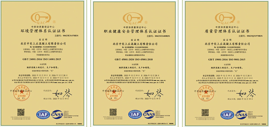 12月中旬,中质协质量保证中心专家组一行到ok138cn太阳集团旗下北京中实上庄混凝土有限责任公司(以下简称北京中实)开展质量、环境、职业健康安全管理体系复评审核认证工作,经过对公司职能部门、生产部门细致严格的审核,最终审核组一致认为公司所建立和实施的管理体系符合相关标准要求,并得到有效运行。