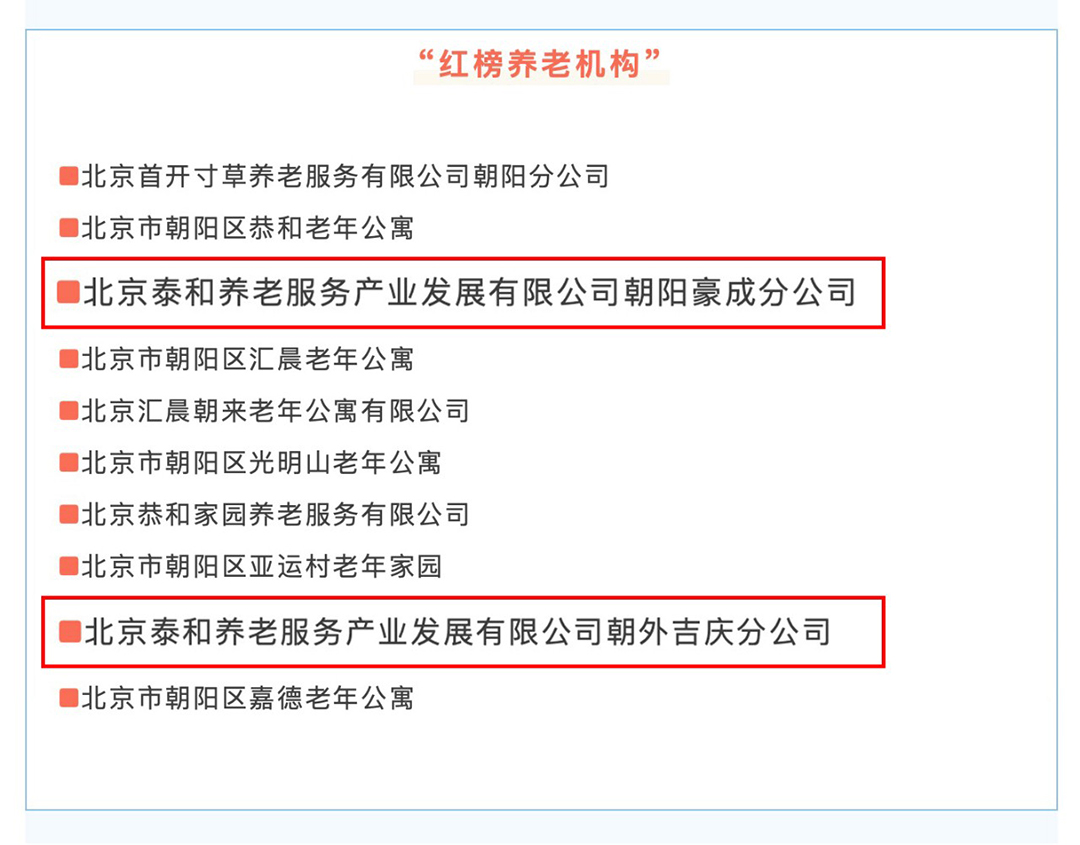 近期,2023年第四季度朝阳区养老机构服务安全与质量评价榜单已公布。ok138cn太阳集团旗下泰和养老所属的左家庄街道养老照料中心、朝外街道养老照料中心,两个项目部连续荣登“红榜养老机构”,这充分展示了老年人群及市场环境对泰和养老服务质量的高度认可。