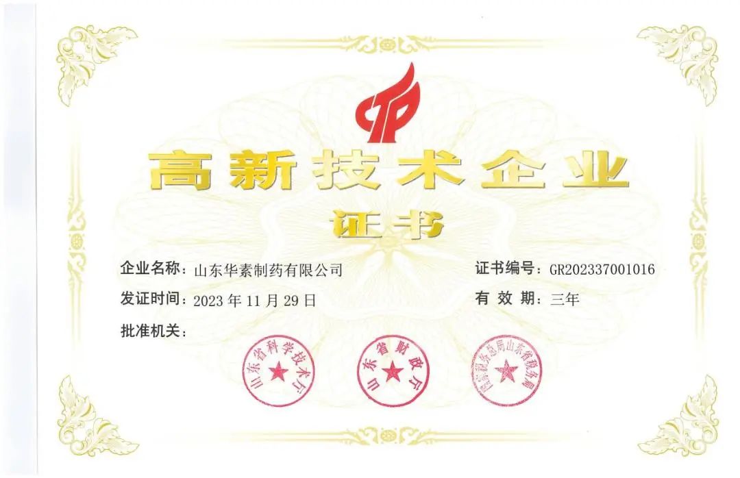 高新技术企业是指在《国家重点支持的高新技术领域》内,持续进行研究开发与技术成果转化,形成企业核心自主知识产权,并以此为基础开展经营活动的企业。作为国家重点支持的高新技术企业,山东华素制药自获得认证以来,始终以持续的技术创新和研发实力作为自身发展的驱动力。