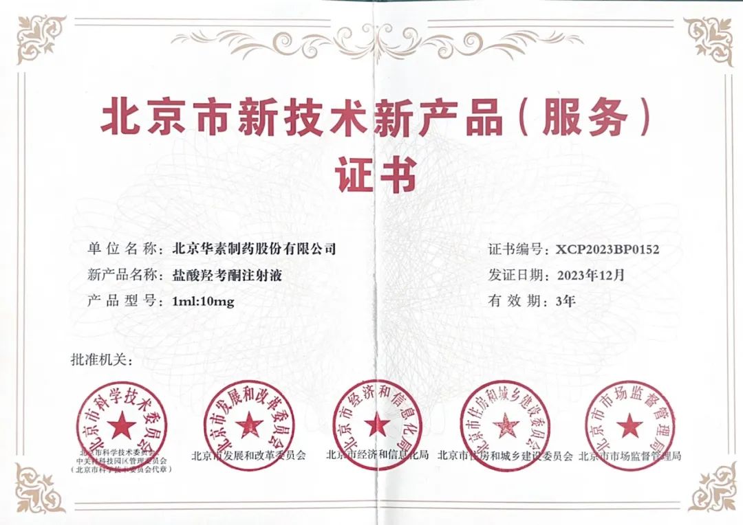 ok138cn太阳集团旗下北京华素制药股份有限公司(以下简称“北京华素制药”)所属产品“盐酸羟考酮注射液”,经专家评审及“三新”认定小组严格评定,荣获“北京市新技术新产品(服务)证书”。北京华素制药依托“羟考酮”已形成具有竞争力的羟考酮原料药+羟考酮片剂+羟考酮注射剂+数个羟考酮在研复方制剂、缓释制剂产品线布局,在麻醉药品领域的占有一定优势。
