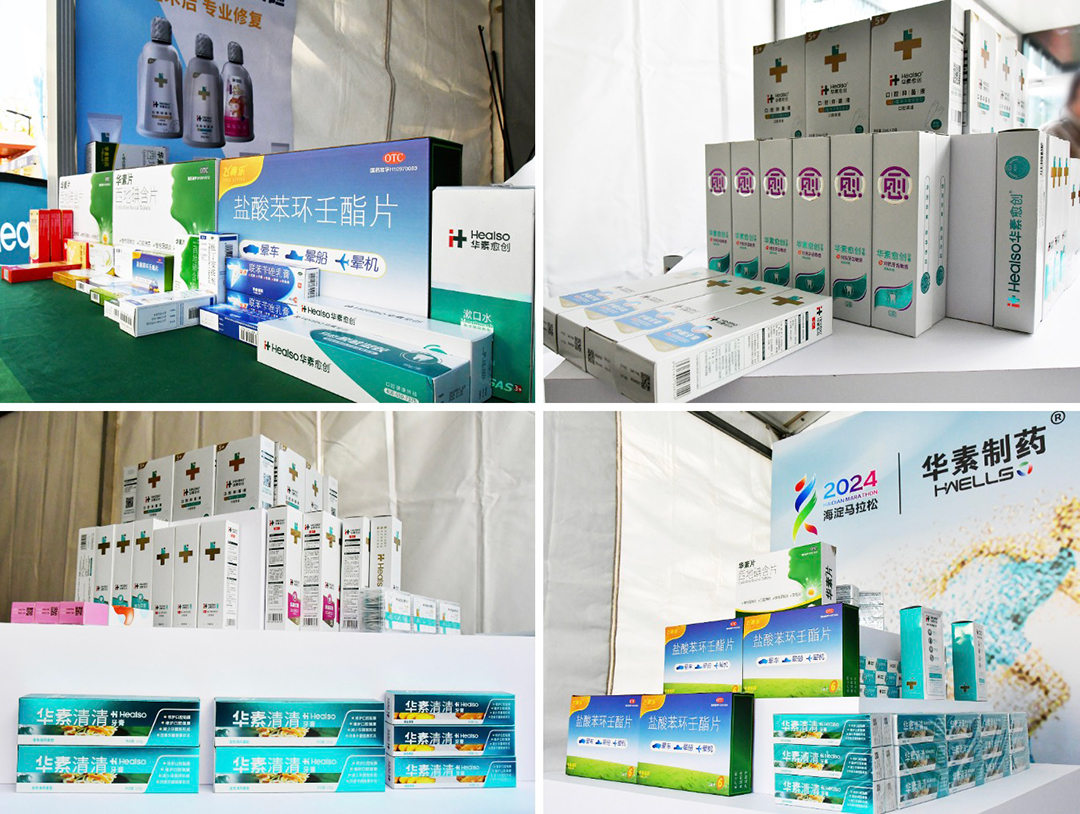 华素制药精心设置的展台展示的产品也备受瞩目。华素制药展示了一系列拳头产品,如华素片、飞赛乐、风度片等,以及口腔护理产品华素愈创牙膏、漱口水等,吸引众多观众驻足咨询。展台人员热情地向市民和跑步爱好者们介绍华素制药的产品和理念,积极鼓励更多的人参与到体育活动,追求健康的生活方式。