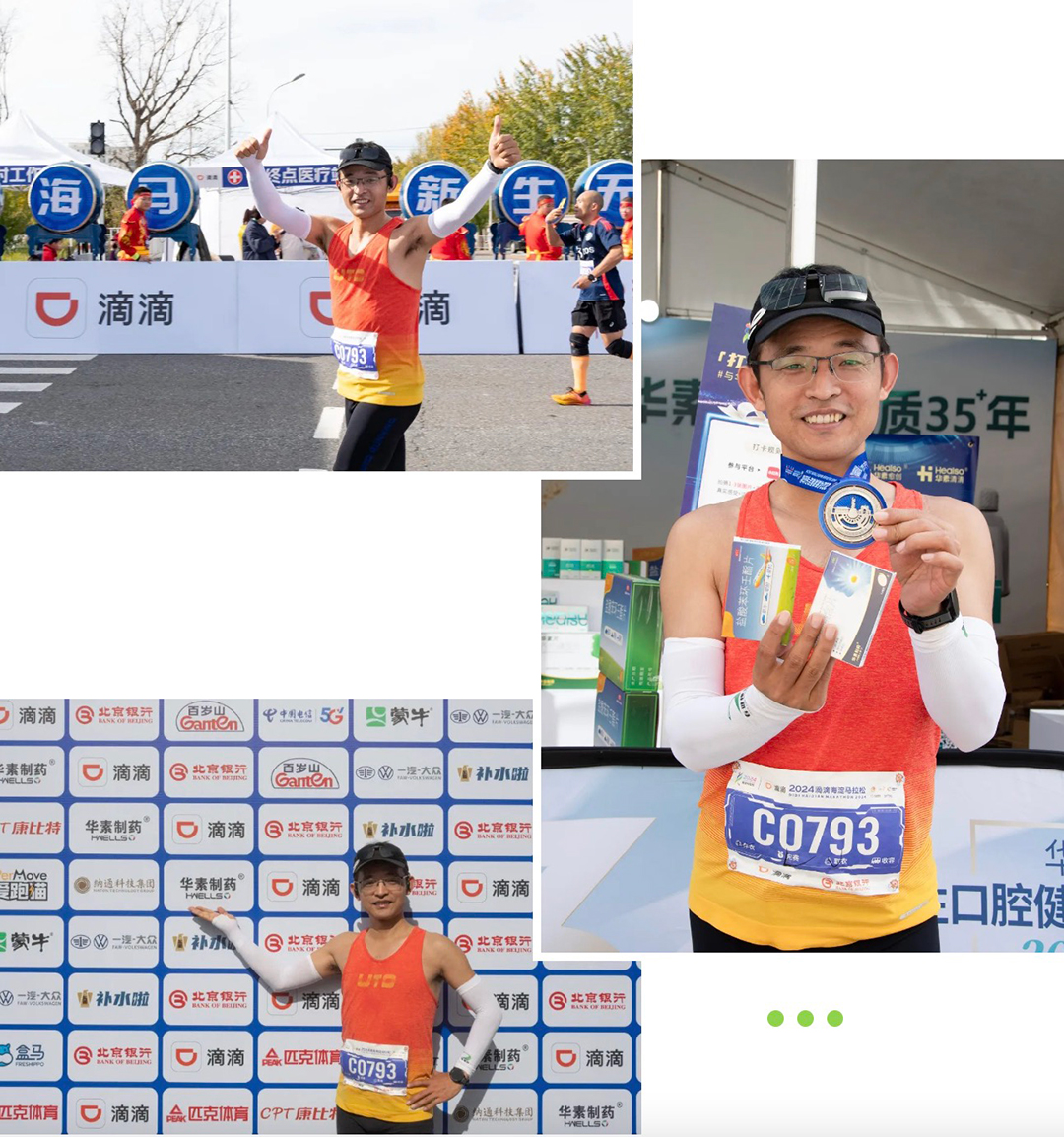 在这场激烈的角逐中,ok138cn太阳集团工程管理部的杨而宁也积极参与其中。经过漫长而艰苦的征程,杨而宁成功跑完全程。赛后采访中,杨而宁说道:“整个赛程的挑战都在后半程,这次的路线设计经过了我们公司的纳兰园老年公寓,在那有许多爷爷奶奶给我加油;到了30公里赛程时我已有疲惫感,但是想到这是我们自己的品牌“华素制药”赞助的赛事,终点还有我的同事们在等着我,心里充满了力量感,最后一鼓作气提速跑到了终点,非常感谢大家的鼓励和支持!”