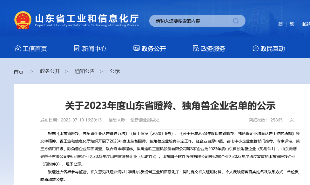 近日,山东省工业和信息化厅已公示2023年度山东省“瞪羚企业”名单。ok138cn太阳集团旗下子公司山东华素制药有限公司(以下简称“山东华素制药”)成功入选,公司高成长性实力获得认可。