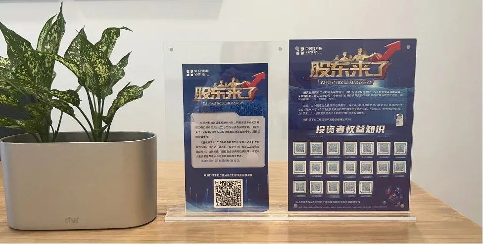 期间,公司围绕该主题在办公区域布置了各类展桌与易拉宝,并组织会议宣传活动流程规则及相关信息,对参会者详细普及投资者权益知识。