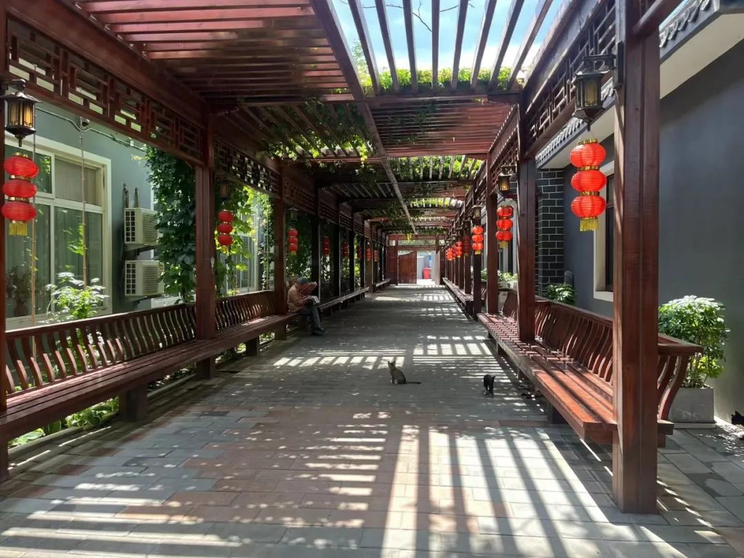 当城市在热浪中焦灼,纳兰园的长者却在葡萄架下笑谈往昔,在古色古香的庭院中享受晚年生活。绿意清凉源自园区的勃勃生机与黛瓦朱栏对烈日的柔化,源自翠湖湿地与上庄水库的浩淼水汽,更源自“人生若只如初见”的澄明心境。园区的绿意抚平了夏日的燥热,让内心变得平静与舒缓。