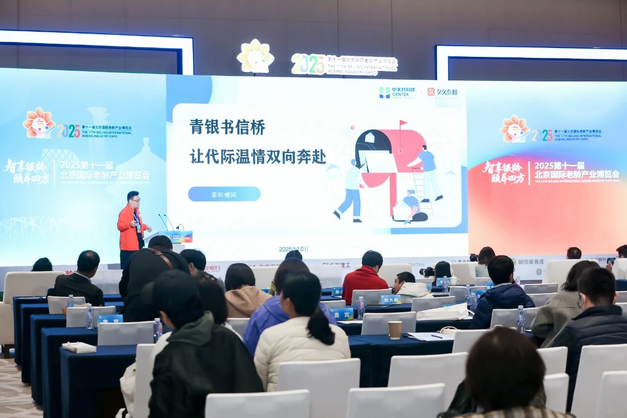 展会同期举办的“新探索、新实践,构建养老、享老生态链”主题论坛上,北京泰和养老服务产业发展有限公司副总经理李想以“青银书信桥——让代际温情双向奔赴” 为题分享实践。