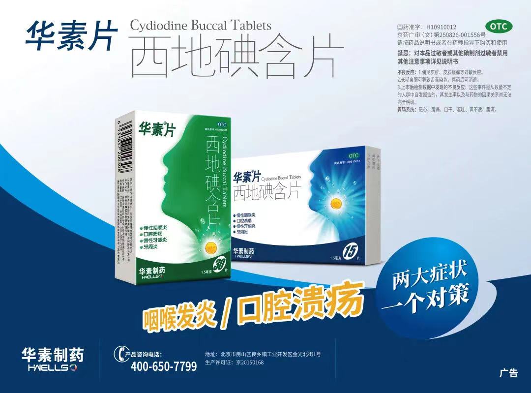 华素片品牌扎根终端30余年,凭借优秀的品质和良好的效果深得店员和消费者的信任。作为咽干咽痛的推荐用药,可以有效缓解和治疗咽喉口炎、口腔溃疡、慢性牙龈炎、牙周炎等口腔炎症。主要成分西地碘与唾液发生作用,迅速释放出“活性碘分子”,直接卤化菌体蛋白,细菌及异味被载体空囊包裹,菌体垃圾通过吞咽唾液,经肠道代谢排出体外。华素片直接作用于口腔咽喉的炎症部位,消炎直接、迅速、无耐药性,适用人群广。