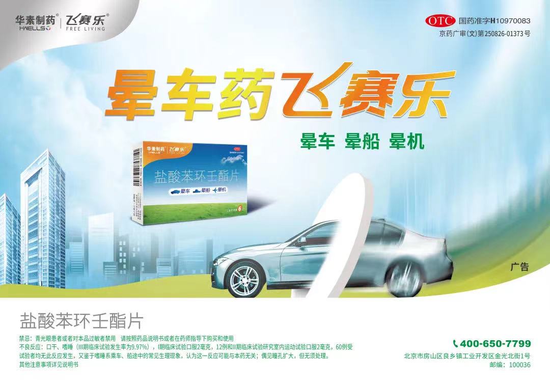 飞赛乐是由解放军军事医学科学院研制的预防晕车类的国家一类新药,已荣获多项国家发明专利与科技发明类奖项,是全球“晕动症”领域先进药物。飞赛乐主要作用于外周神经系统,对中枢性活动基本无影响,不会造成低血压、幻觉、腹痛、腹胀等多种不良反应,安全性高且无副作用。