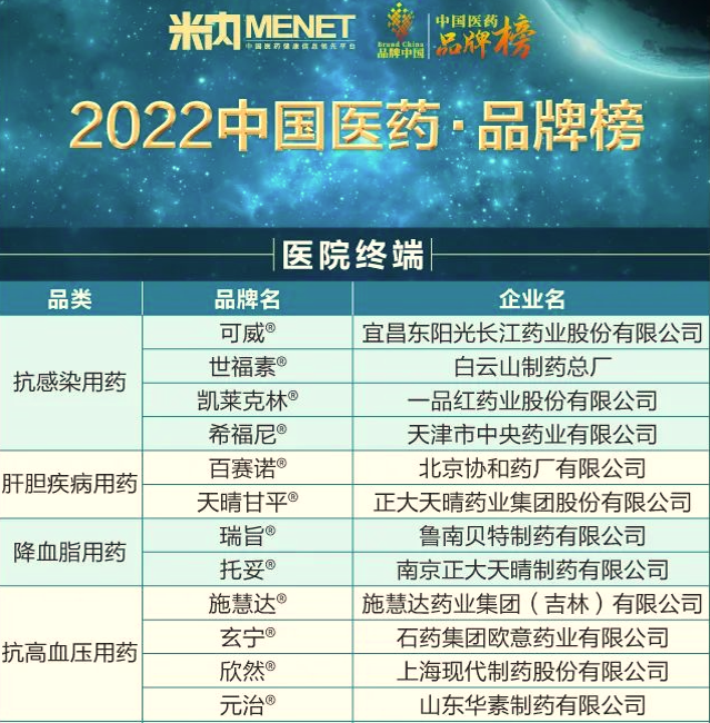 2022年7月14日,医药行业年度盛会“米思会”在浙江省湖州市召开,会上同期发布“2022中国医药·品牌榜”榜单。