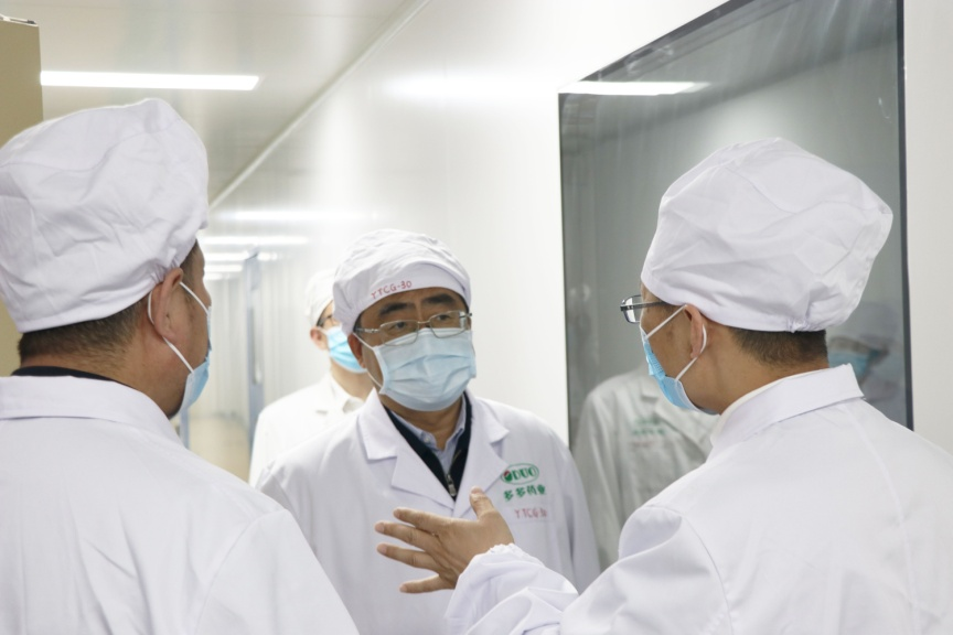 王秋实在座谈调研时详细了解多多药业各方面发展情况,询问并现场解答公司目前面临的困难和问题,对干部职工表示慰问和感谢,希望多多药业借助ok138cn太阳集团的优势力量,加大技术创新投入,不断提高产品效益,加强现代化、精细化管理,以市场为导向引进落地更多医药项目,推动企业快速、高质量发展;同时要求企业坚持生产、防疫、安全一起抓,切实履行主体责任,加强员工培训和警示教育,提高员工防疫意识,做好自我防护,统筹做好疫情防控和经济发展工作。